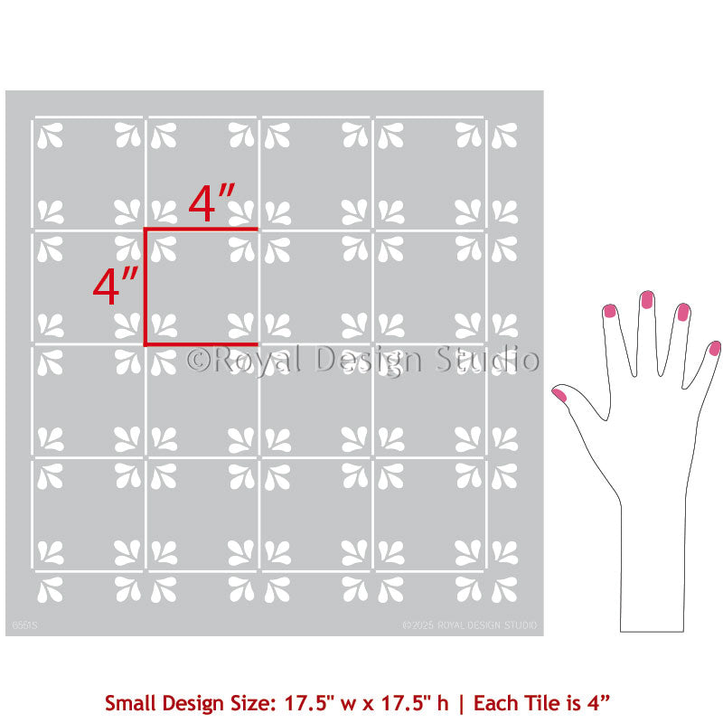Small Tile Pattern Size: 17.5"w x 17.5" H, Each tile is 4"