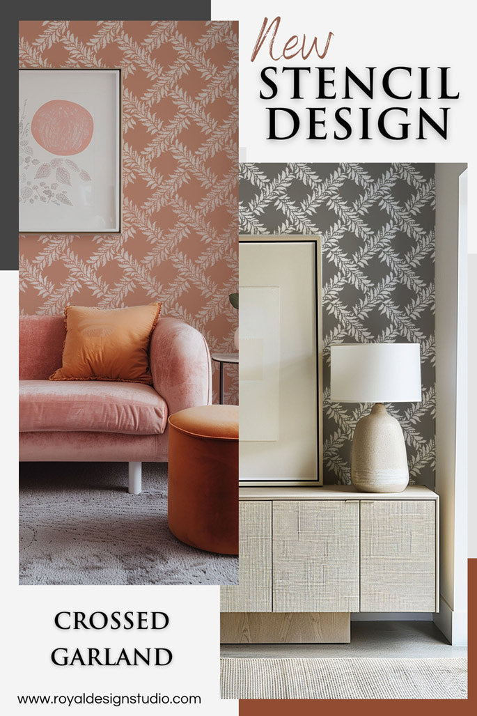 Interlacing garlands of leaves form a lovely "weave" pattern in this allover wall stencil design. Choose soft stencil paint colors for a more feminine look or go bolder for more modern interiors