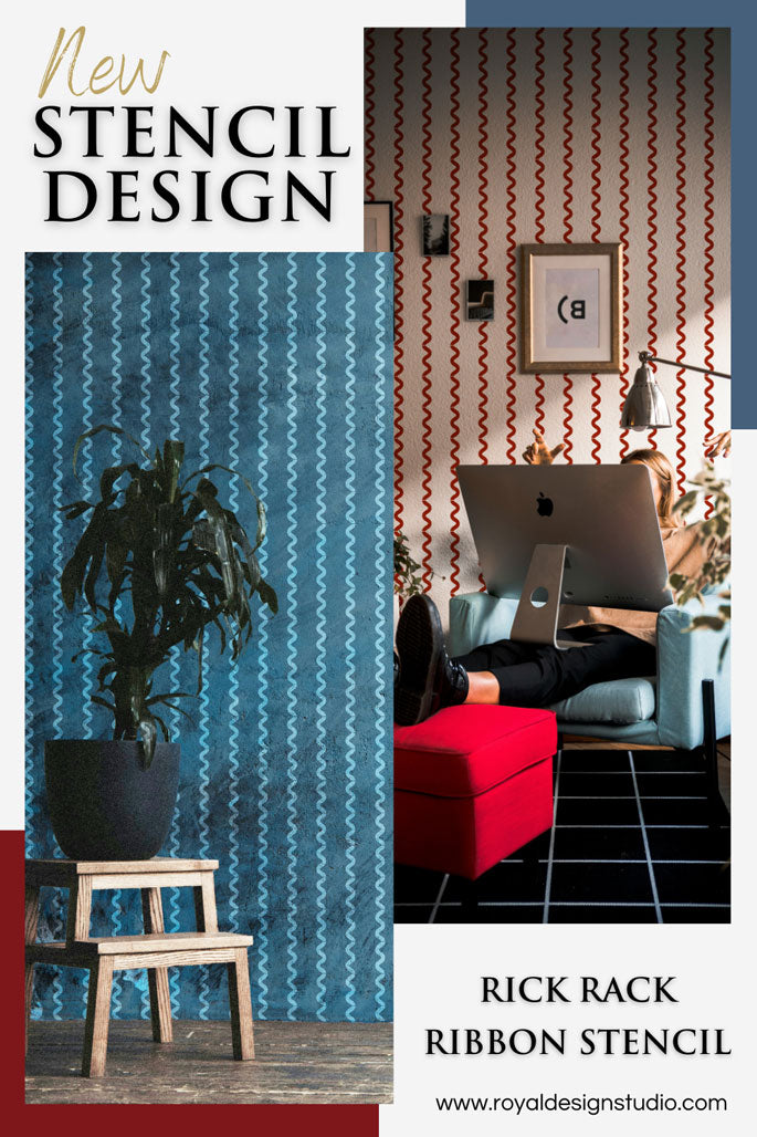 We are loving the simplicity and possibility of this new stripe pattern stencil in a classic rick rack design. The perfect, whimsical wall stencil for kids rooms, offices and more!