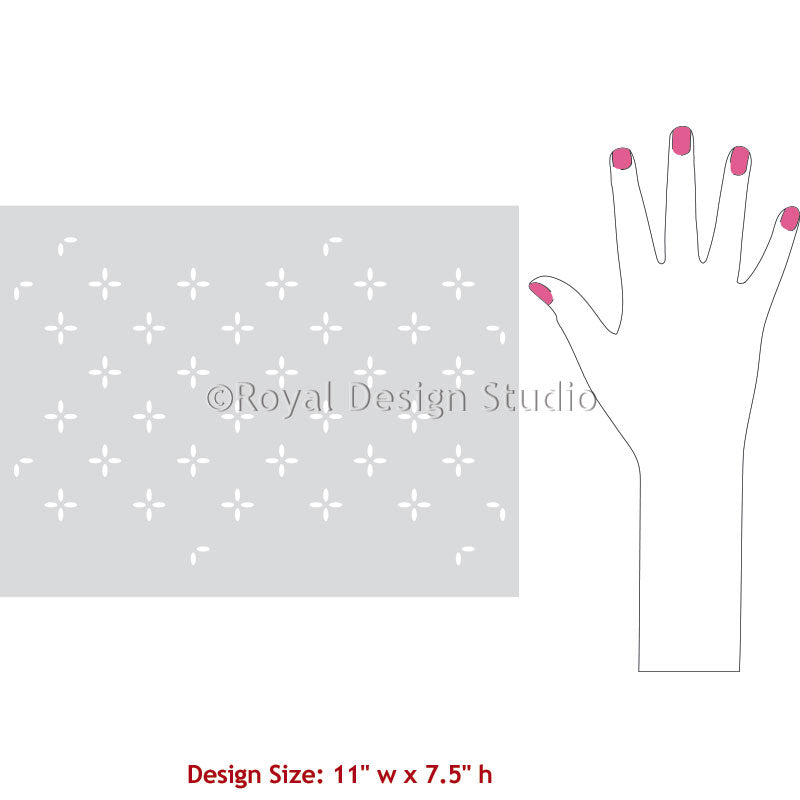 Newly updated in 2 stencil versions for stenciling furniture or walls. Note that the larger wall version has increased spacing between the flower elements.